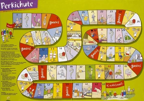| Perkichute. Un outil pédagogique et ludique de prévention des chutes pour les personnes âgées. Perkichute aborde les thèmes suivants : l'alimentation, la prévention de l'ostéoporose, l'activité physique, la prise de médicaments, l'aménagement du lieu de vie etc. Cet outil est destiné aux soignants et / ou animateurs exerçant en établissement de santé et d'hébergement pour personnes âgées. © Pascale LAGARDIERE, Philippe CHAMBOST |