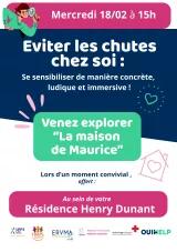 Le mercredi 18 février 2026 à partir de 15h00, OUIHELP et La Croix Rouge Française s'associent pour organiser un atelier de sensibilisation avec la "Maison de Maurice". Il s'agit d'un outil ludique, immersif pour vous sensibiliser de manière concrète à la prévention des risques de chute au sein du domicile.