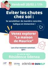 Le 20 février 2026 à 11h00, OUIHELP et Edenéa s'associent pour organiser un atelier de sensibilisation avec la "Maison de Maurice". Il s'agit d'un outil ludique, immersif pour vous sensibiliser de manière concrète à la prévention des risques de chute au sein du domicile.